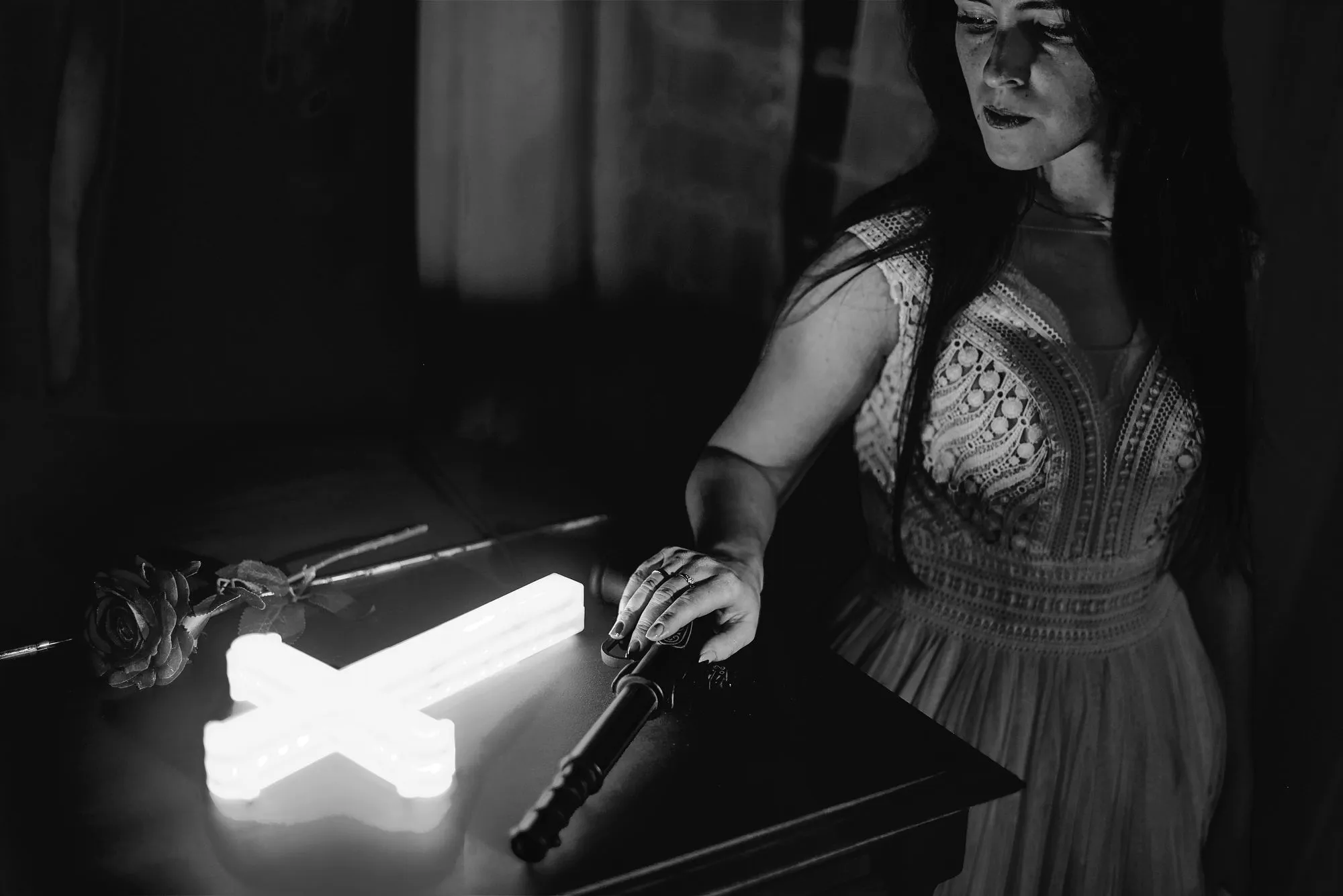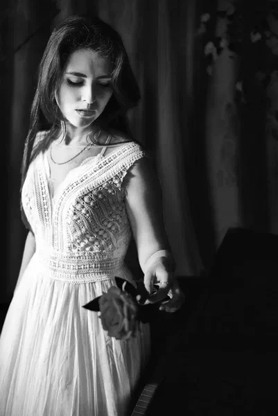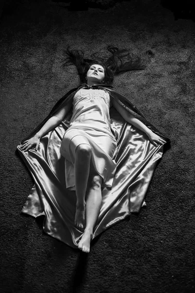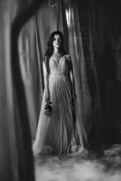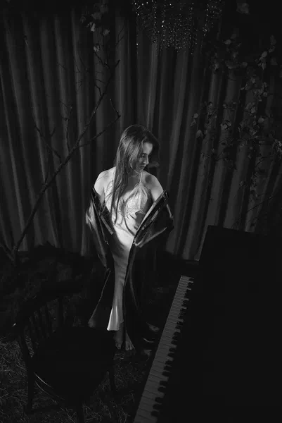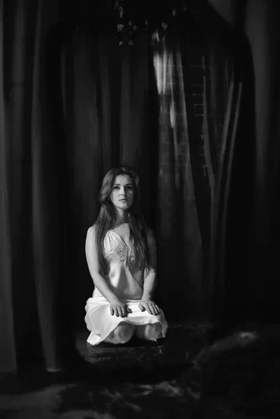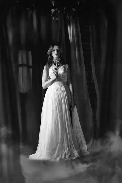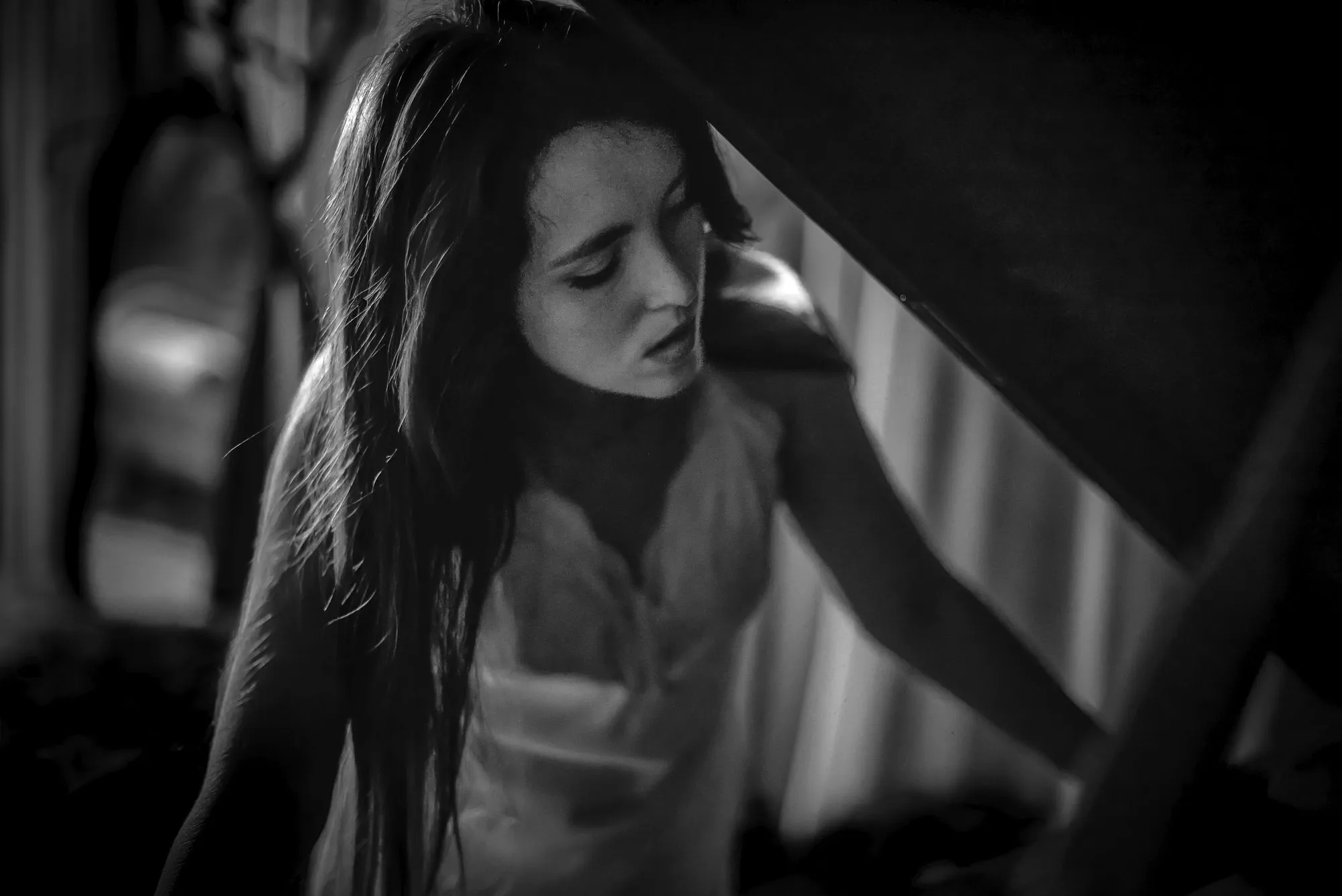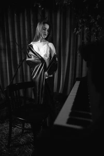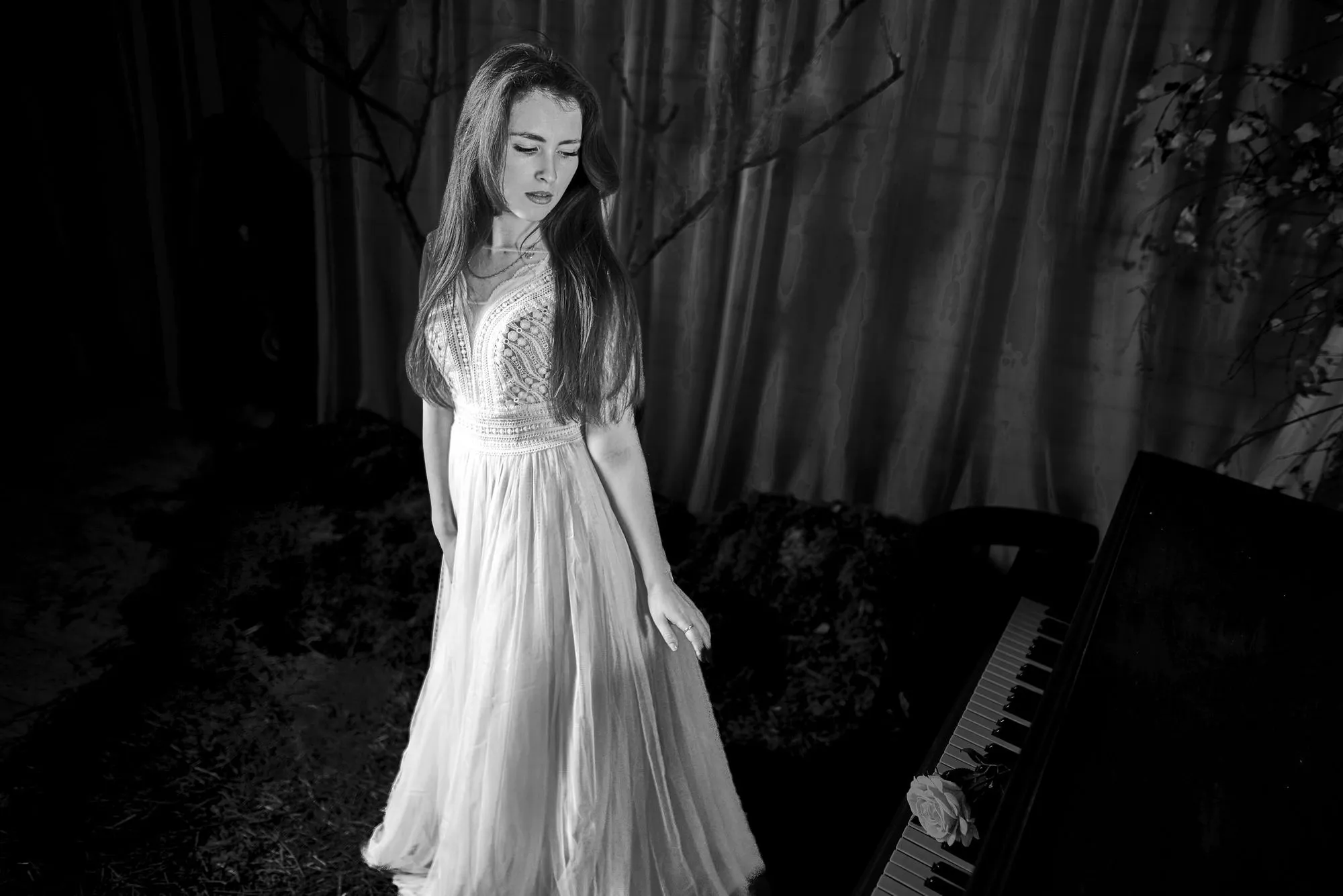 🌙 Бессонница из серии «Кукла колдуна» Это не просто ночь без сна. Это — пространство между мирами: где доверие встречается с обманом, а защита превращается в искушение. Девушка в винтажном свадебном платье и двухстороннем плаще с капюшоном бродит по полумраку заброшенного интерьера, будто ища выход из сна, который уже не кажется сном. Рядом — старый рояль, зеркало, отражающее не только лицо, но и внутреннюю тревогу. Ни дверей, ни голосов — только напряжённое ожидание и тихий поворот от страха к решимости. Эта серия — первая часть триптиха, вдохновлённого мрачной поэзией песни «Кукла колдуна». Здесь ещё нет колдуна — только его тень, его ожидание… и её выбор.